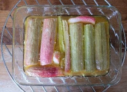 First prepare the fruit (or use leftover cooked fruit). Wash the fruit, peel if necessary then cut into even chunks. Place into a pan and sprinkle over the tablespoon sugar and butter, cover with a lid and gently simmer until soft. Alternatively bake in a low oven until the fruit is soft (as in the photos here). Leave to cool, taste and add more sugar if necessary to your taste.